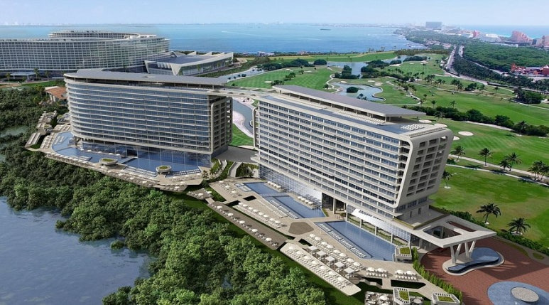 마야 피라미드 느낌의 건물에 골프장, 수영장 4개,